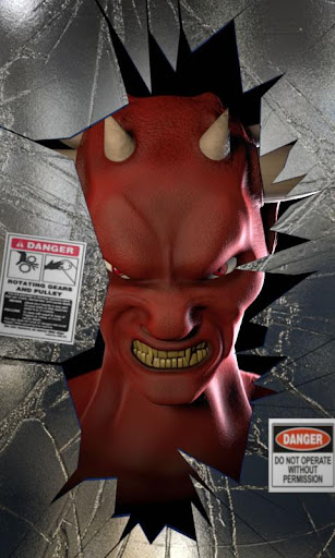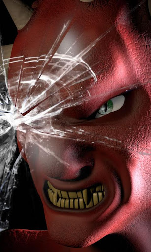 Animated live wallpaper devil showing anger brushing teeth lightening eye. devil red, fire like eyes horns head. Amusing computer animation evil fans dark motives.